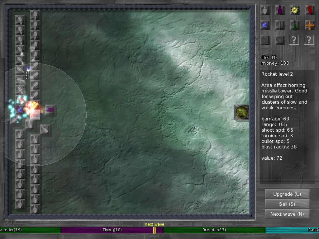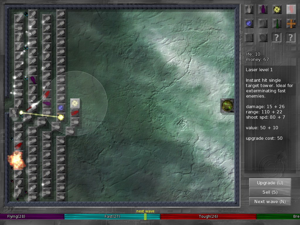 Tower defense style game made in 1 week for some competition. Code, graphics(Blender/Gimp) and sounds(Audacity) made by myself.